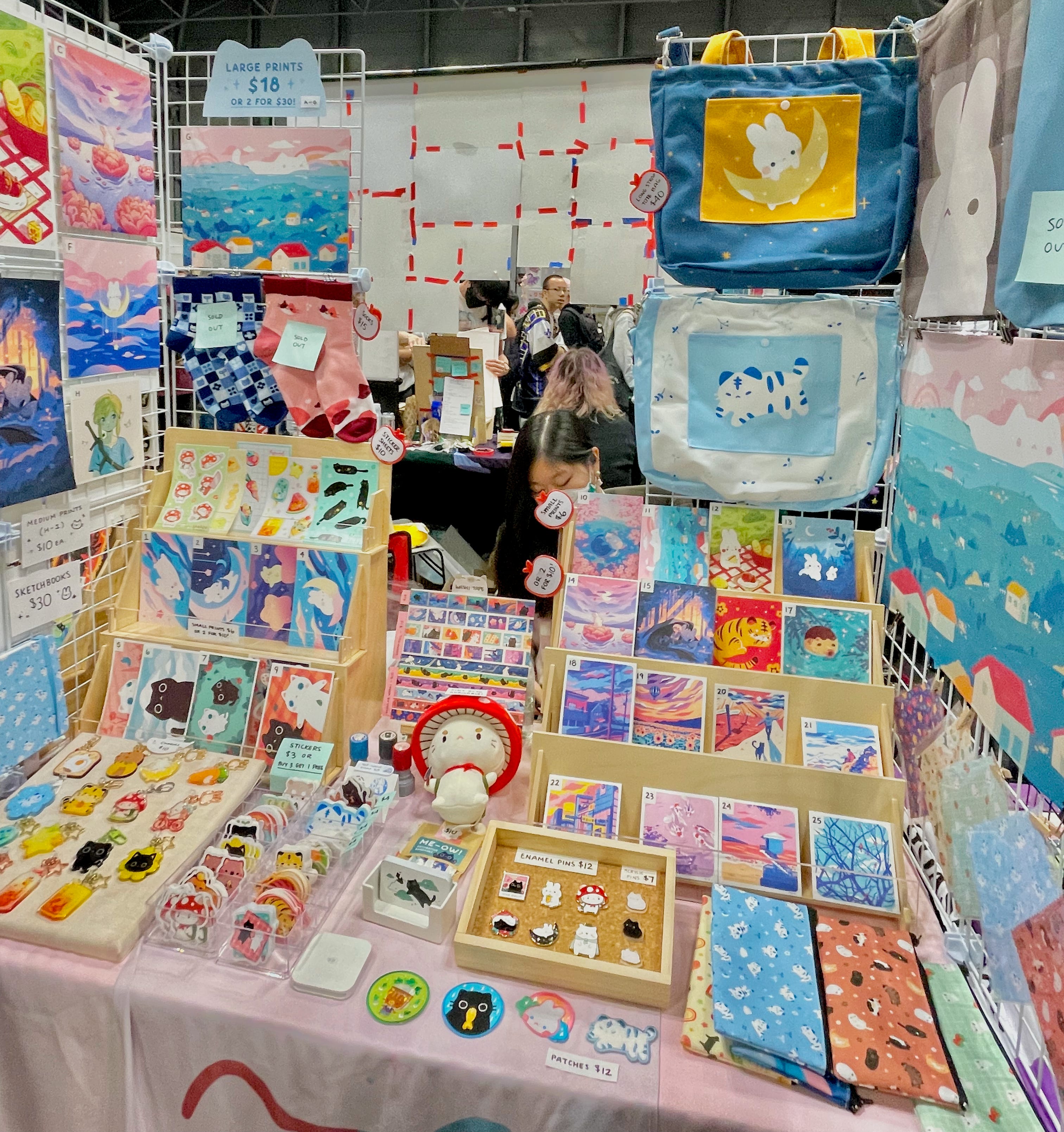 Made up of many people who don’t get outside as much as they should, animé conventions are a thrilling reminder of how many people truly care about the arts, and put in the work to surround themselves with its presence. Artist’s Alley is one of the most famous elements of a media convention, where vendors contribute their own sense of ownership of the day’s experience. The heart yearns for a walkable market, and Artist’s Alley is where artists from across the country set up their booths to peddle their wares. Cash and card is still exchanged for their goods, but in the pursuit of their passion and visions of the world, they give us their hearts. It’s impossible to buy everything your heart desires, but witnessing the bounds of human creativity and joy is where the experience is still your own.